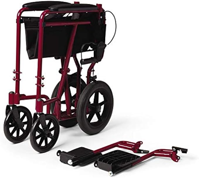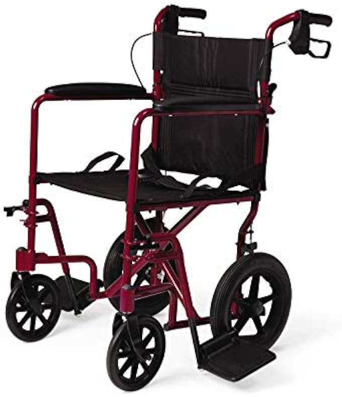 Transport wheel chair seat dimensions are 18 x 16 inches | Weighs 23.5 lbs | Color: Red