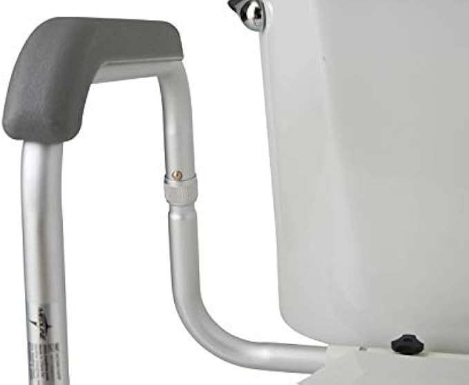 • Toilet safety frame adjusts in height from 26 to 31 inches to accommodate standard or elevated toilet seats | Tool free assembly