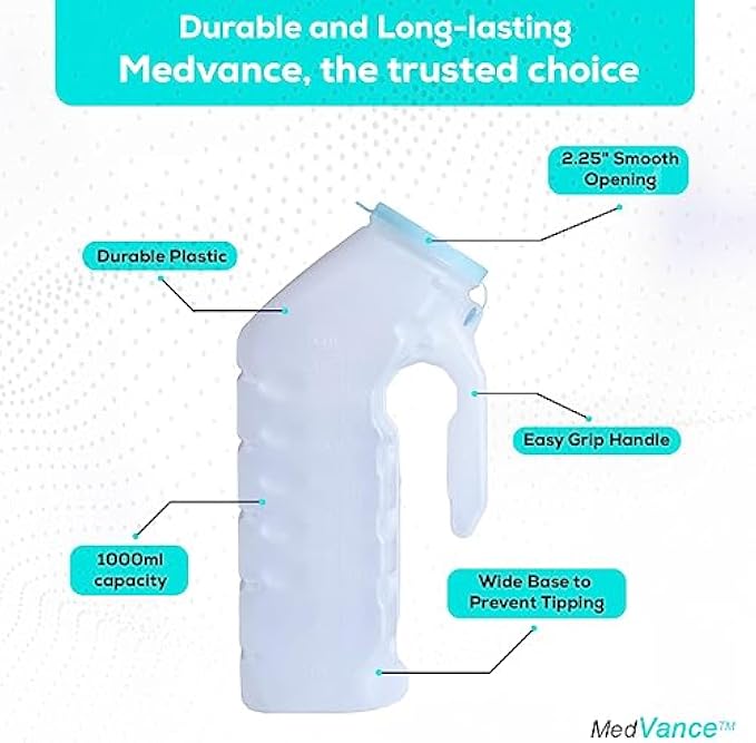 ✅ MULTI-FUNCTIONAL URINALS FOR MEN – Medvance Spill-proof Urine Bottle is best used for incontinence and medical care. It is also perfect for the elderly, bedridden patients and for those who are physically-challenged. You also don’t need to worry about going to the restroom when you drive and travel for long hours, or when you go out camping because our portable male urinal is the excellent emergency pee jar for you!