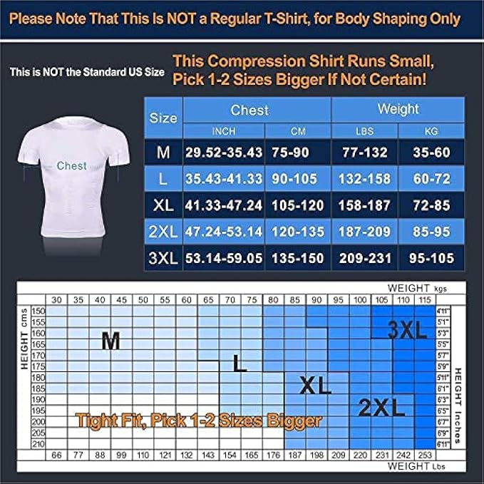 ?⚠Please Note That This Is NOT a Regular T-Shirt But a Tight(Slim) Fit Compression Shirt, for Body Shaping. Pls Refer to Our Size Chart before Purchase(Not Standard US Size) ? ?Made in USA or Imported?⚠ Item may look smaller than expected(in order to offer compression just right), but it does stretch very well. For mild compression pls order 2 sizes up. Pull On closure Hand Wash Only ✅INSTANT SLIMMING RESULTS- How would you like to get the incredible results without exercise, without diet, without pills? Our Slimming undergarment-- your FAT BURNING ASSISTANT will hide "man boobs" very well, tighten "beer belly" with 12 special structure panels in front, trim Love-Handles on sides, eliminate back fat, dramatically improve posture on the back with criss cross back panels. ✅WEAR UNDER ANY CLOTHES- Invisible under all your clothes, such as suits, formal dress shirts, workout shirts, t-shirts, polos and sweaters. Wear it anytime, anywhere, look inches smaller and pounds thinner. This Compression Shirt is the best choice for body shaping, definitely a secret weapon that brings your self-esteem back. ✅HIGH QUALITY NYLON AND SPANDEX TO STAY SHAPE- This body shaper is made of high-end Nylon and Spandex, there must not be even a single sloppy stitch, the seams are very sturdy, unbreakable even under strong pull and won't lose its elasticity after use. Seamless Design makes the slimming Tank Tops the ideal undershirt. Wear this firming tee flattens your chest, stomach, back fat.This male Shapewear best for zumba, yoga, gym, fitness, running, jogging, hiking, cycling and much more sports. ✅EXCELLENT COMFORT- The light, highly-elastic fibre (80% Nylon + 20% Spandex) offers full range of movement, extremely breathable, sweat absorbing and heat releasing. Not only maintain the natural texture, also keep the lasting elegant sense and excellent comfort. This Slimming vest give you 360 degree superior support and stay comfortable all day long. ✅①【SATISFIED GUARANTEED】- Anything pls feel free to contact us, we shall reply WITHIN 24 HOURS. REFUND AVAILABLE, ORDER RISK-FREE. ②【HOW TO WEAR】- You may not be comfortable when you wear this compression shirt for the first time, it will be a tight fit. But you'll get used to it after a week. We strongly suggest you to gradually prolong the time of wearing until you get with it. Wearing our slimming shaper , with healthy eating and scientific exercise, you'll be successful in weight loss