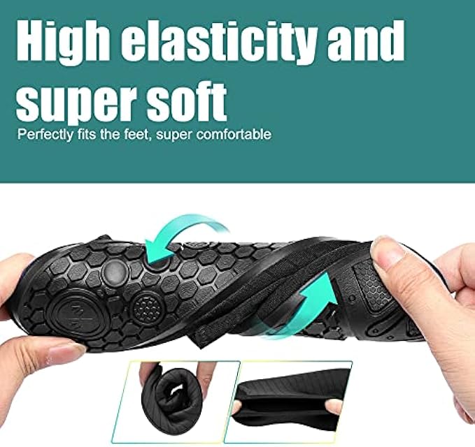 • Soft:After using the Aqua Socks, you can fold it easily.Aqua Shoes with strong wicking performance, compressible craft perfect fit to foot, perfect to carry when you go out.The elastic collar design for quick wearing our water shoes, protecting your feet from dripping off.