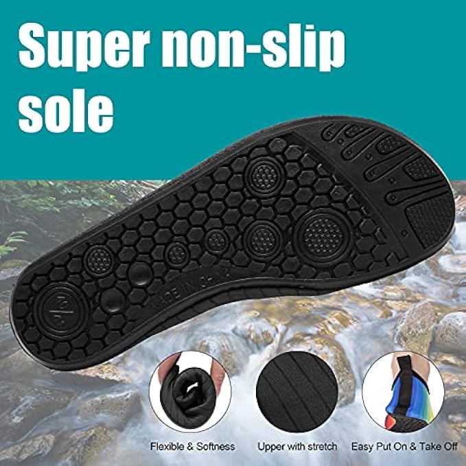 Breathable :These barefoot water sports shoes will quick drying with great airflow for a cool ,upper is made of a diving material ,the water socks will help you to take a challenging day with comfortable and healthy legs.