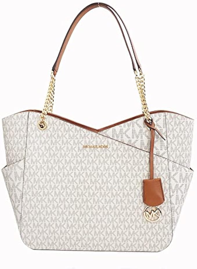 Michael Kors Jet Set Travel Large Chain Shoulder Tote (VANILLA Multi)