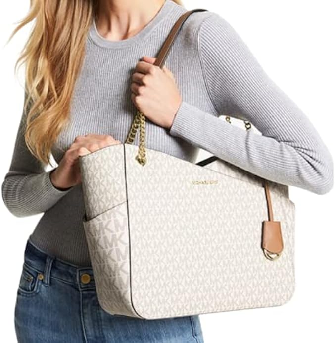 Michael Kors Jet Set Travel Large Chain Shoulder Tote (VANILLA Multi)