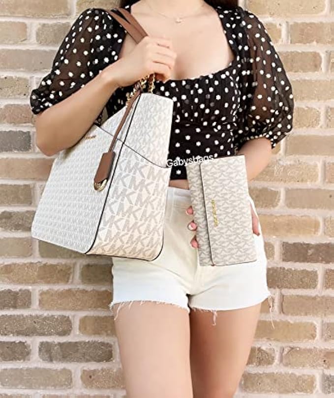 Michael Kors MICHAEL Michael Kors Jet Set Travel Large Chain Shoulder Tote bundled Jet Set Travel Trifold Wallet