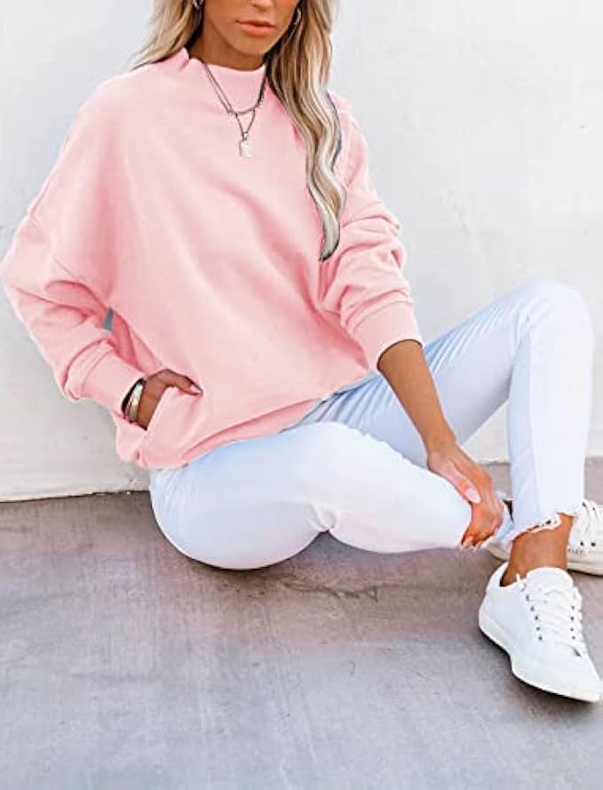 Minclouse Women's Casual Long sleeves Sweatshirt Tops Basic Loose Fit Mock Turtleneck Lightweight Tunic Pullover With Pocket