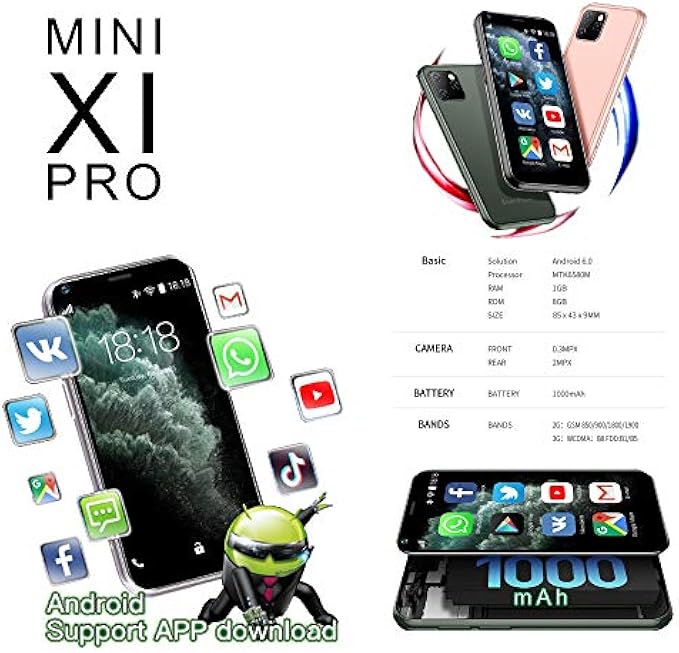 • ? COOL MiNi SMART PHONE with such a Cute iPhone 11 Pro Max Look alike Design and a Mini 2.5 inch Little TouchScreen. Use it like any other Android mobile, You Can Browse the Internet anywhere and use Google Play Store to Download apps at the Palm of your Hand.