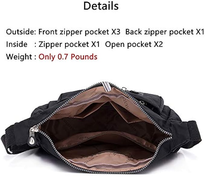 Crossbody Bag Material: Made of durable water resistant and stain resistant nylon fabric, easy to care for wipe clean or machine wash.
