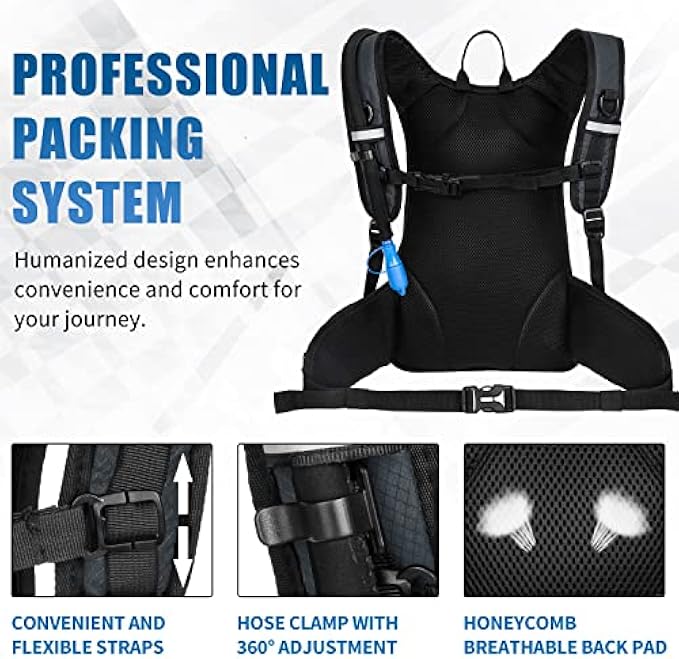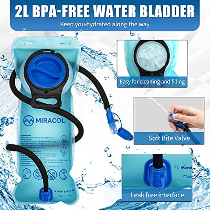 Hiking Optimized Design: This hiking hydration backpack is purpose built for hiking outdoor adventures, featuring a dedicated compartment to securely hold the included 2L water bladder. The leak-proof and taste-free water bladder ensures a clean and pure drinking experience, while keeping your gear dry and protected.