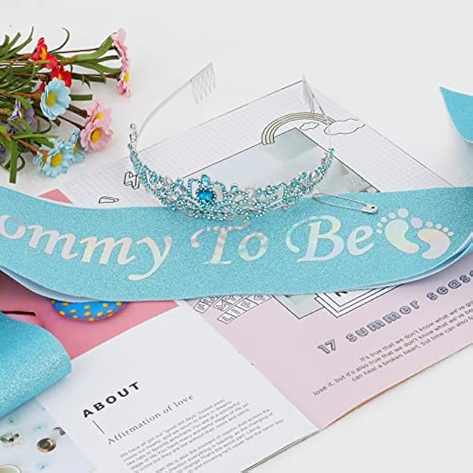 STAND OUT ON YOUR SPECIAL DAY: Make a statement at your baby shower with our mommy-to-be sash and tiara set, designed to make you feel comfortable and special throughout the day. The lightweight blue sash and premium metal alloy tiara crown are perfect for any hairstyle and will fit almost all head sizes.