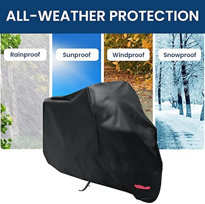 Waterproof & Windproof - WDLHQC motorcycle cover can withstand up to 2000 Pa water pressure ( Most competitors only 700-800 Pa).The generous size covers your entire motorcycle, with close stitching and dual heavy-duty buckles on the bottom that prevent from rain,storm or heavy winds.