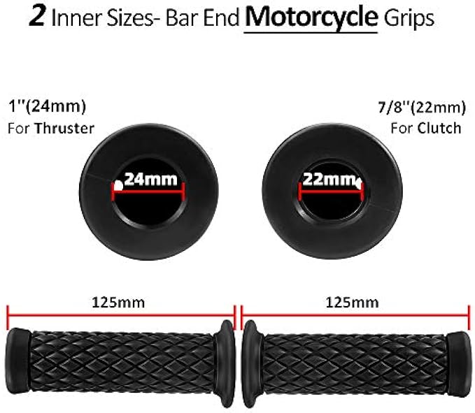 • Grips for 7/8''(22mm) left handlebar and 1''(24mm) right handlebar