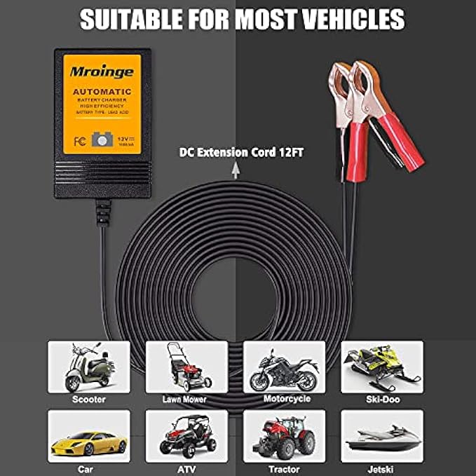 √ Compatible With Most Vehicles - Adapts to all kinds of 12V battery for cars, motorcycles, lawn mowers, ATVs, lawn tractors, trucks, SUVs, boats, classic cars, emergency battery and more.