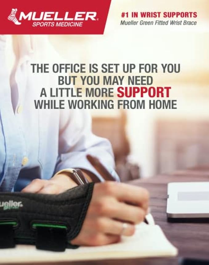 Mueller Sports Medicine Green Fitted Wrist Brace, For Men and Women, Right Hand, Black, Small/Medium