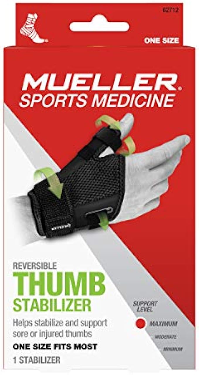 MUELLER Sports Medicine Reversible Adjust-to-Fit Thumb Stabilizer, Thumb Splint for Arthritis Pain and Support, For Men and Women, One Size Fits Most
