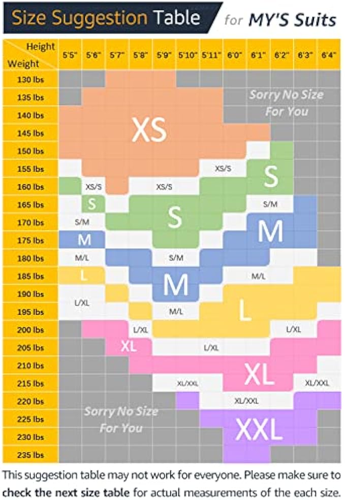 • HOW TO CHOOSE SIZE -- XS≈36R, S≈38R, M≈40R, L≈42R, XL≈44R, XXL≈46R. Please check the MYS SIZE TABLE in description carefully to avoid waste of time and money on returns. DO NOT look at the Amazon size chart. If you are not sure, we strongly suggest you to inquire about size first. You can tell us your height, weight, chest circumference and waist circumference and we will figure out the best size for you.