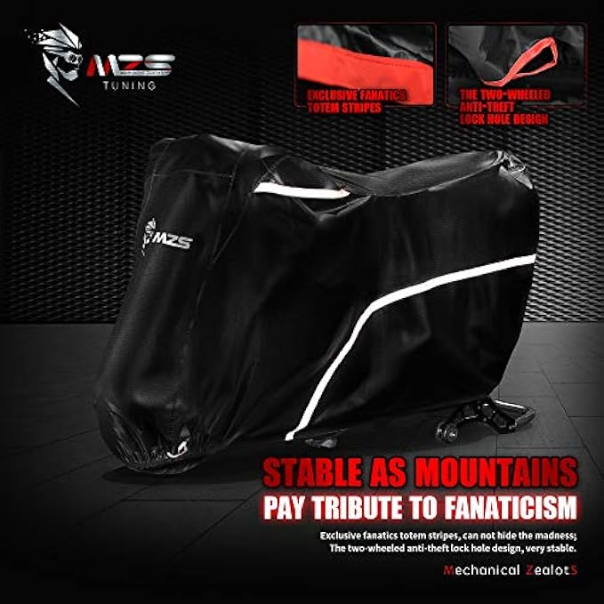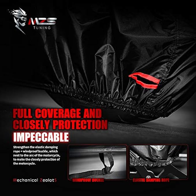 High Quality Material - MZS motorcycle cover is made of premium quality oxford fabric, harder to break than traditional materials. After the color test such as sunshine, water repellency and rubbing property, fade resistance is 6 degrees, very strong and long lasting.