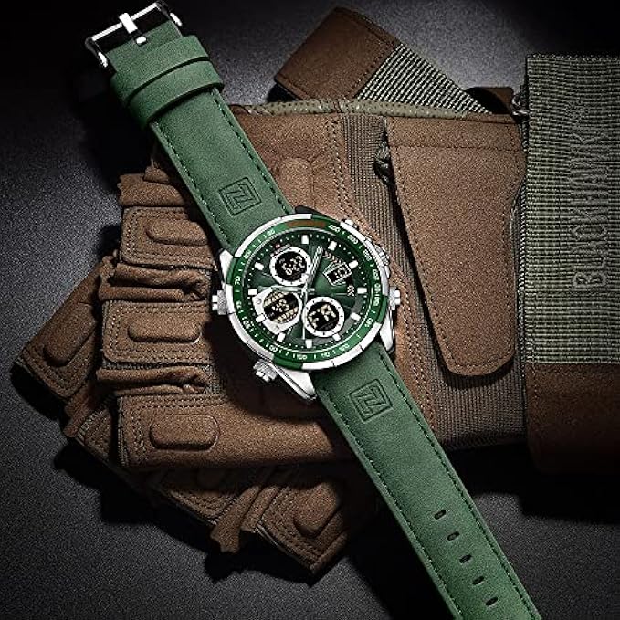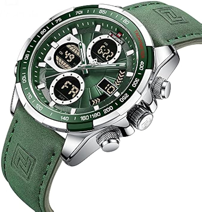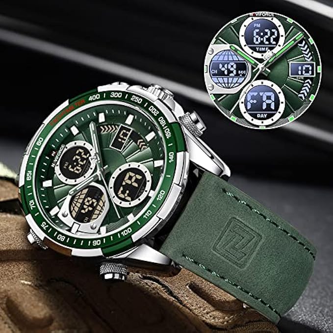 NAVIFORCE Men's Military Digital Watches Analog Quartz Waterproof Watch Sport Multifunctional Leather Wristwatch