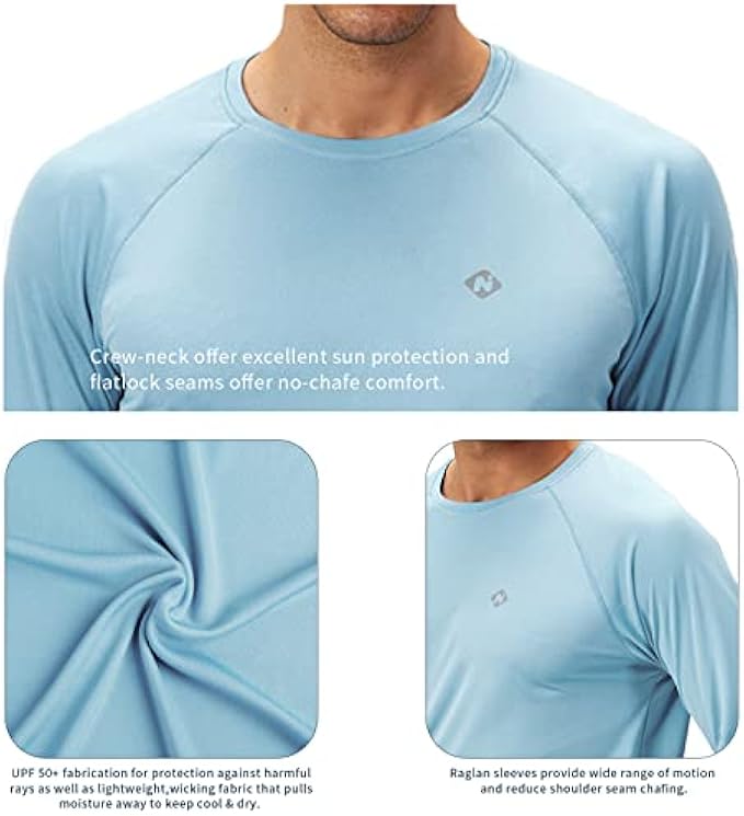 100% Polyester Imported Pull On closure Machine Wash 【SUN PROTECTION - ENJOY THE SUN SAFELY 】- UPF 50+ fabrication protects the skin during outdoor activity by blocking harmful UVA and UVB, delivers a relaxed fit for all-day comfort. If you enjoy outdoor activities, this is the best one for you! 【MOISTURE WICKING TECHNOLOGY】 - KEEPS YOU DRY & COMFORTABLE -lightweight, breathable, moisture-wicking fabric keeps you dry and cool feeling, suitable for sports & outdoor activities, like hiking, golf, fishing, traveling, boating, climbing, running, workout, etc. 【CREW NECK】- Crew-neck offer excellent sun protection and flatlock seams offer no-chafe comfort, ideal for outdoor activities like golf, fishing, hiking, traveling, boating, climbing, running, workout, etc. 【RAGLAN SLEEVES】- Raglan sleeves provide wide range of motion and reduce shoulder seam chafing 【IDEA FOR ALL OCCASIONS】-This sun shirt is suitable for surfing, fishing, running, hiking, camping, workout and other outdoor activities. Reference Size: S: CHEST: 35.5"- 37.5", WAIST: 30.5"- 32.5", LENGTH: 28" / M: CHEST: 38"- 40", WAIST: 33"- 35", LENGTH: 28.8" / L: CHEST: 40.5"- 42.5", WAIST: 35.5"-37.5", LENGTH: 29.5" / XL: CHEST: 43"- 45", WAIST: 38"- 40", LENGTH: 30.25" / XXL: CHEST: 45.5"- 47.5", WAIST: 40.5"- 42.5", LENGTH: 31.5"