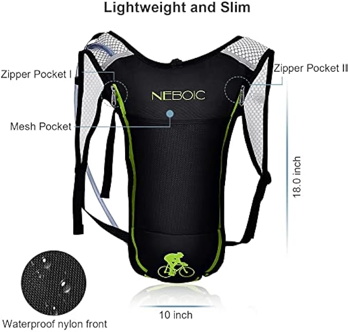 Neboic 2Pack Hydration Backpack Pack with 2L Hydration Bladder - Lightweight Water Backpack Keeps Water Cool up to 4 Hours with Big Storage for Kids Women Men Hiking Cycling Camping Music Festival