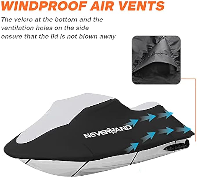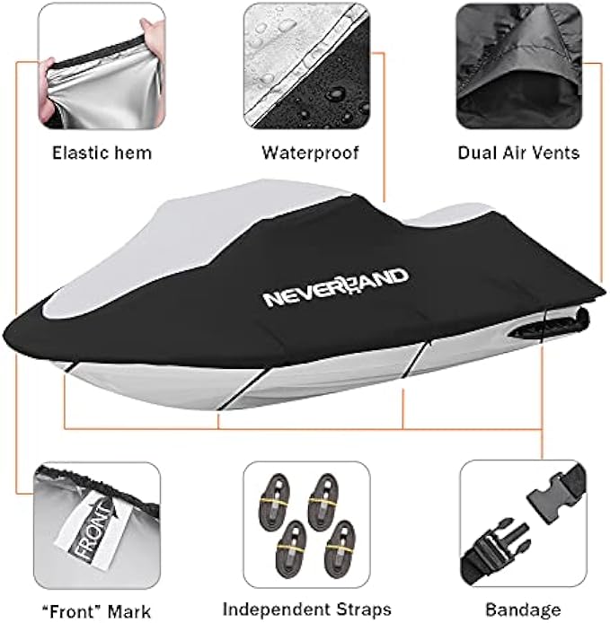 【NEVERLAND Jet Ski Cover】Made of 210D Oxford cloth, suitable for outdoor parking and transportation, easy to install and easy to clean. Provide protection for your motorboat from dust, debris, rain and other factors. Thick and breathable, strong and durable. Black with silver, silver can reduce the heating of the top instrument and seat.