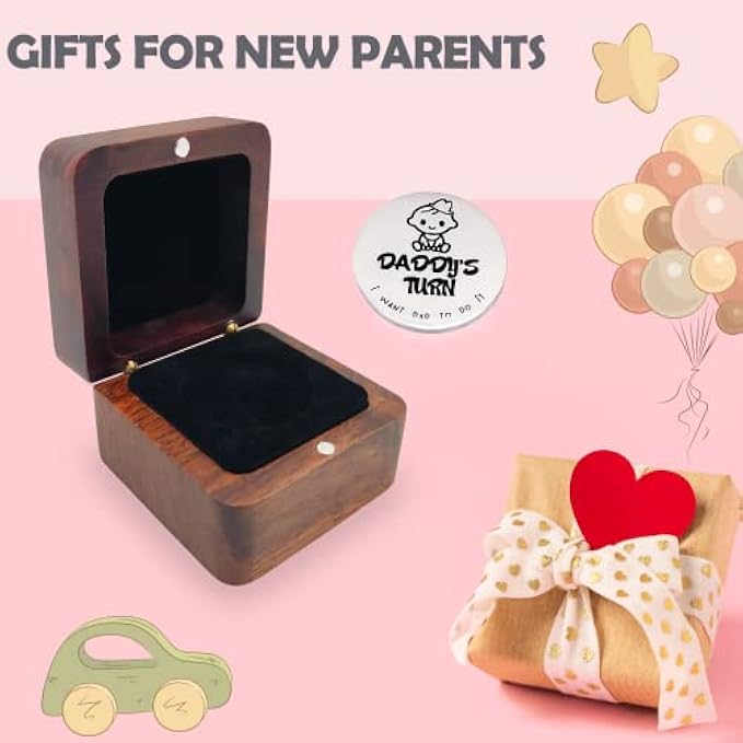 New Baby Gifts for New Parents Mom Daddy Funny Double-Sided Silver Decision Coin with Handmade Wooden Box Pregnant Gifts for First Time Moms Keepsake for Baby Memory