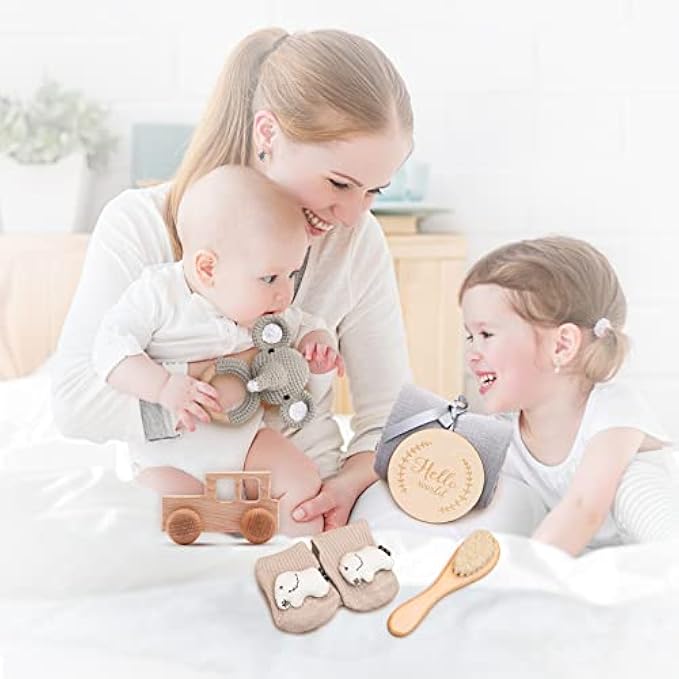 • ???High Quality - Good products and good quality has always been the premise of our products. Baby blanket and baby socks are made of high quality cotton offers your baby with maximum softness. Wooden car, wooden brush, wooden milestone piece are made of natural wood and no burrs, which ensures that children are safe when using.