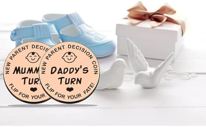 Super Cute Little Gift for New Parents: Are you looking for a fun little gift for new parents? Try our cute coin to make decisions easier for you and your other half, your husband, wife, friends, sisters, brothers, sons, daughters, coworkers, boss who is gonna be a new mommy or daddy.