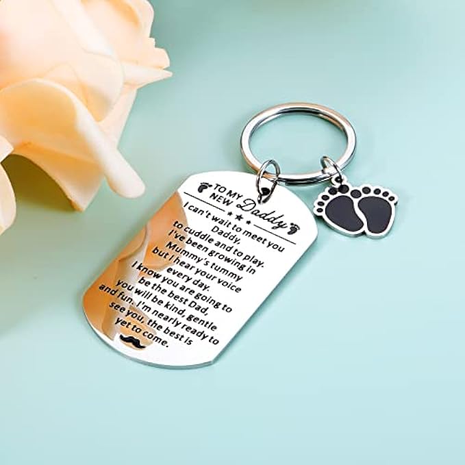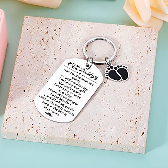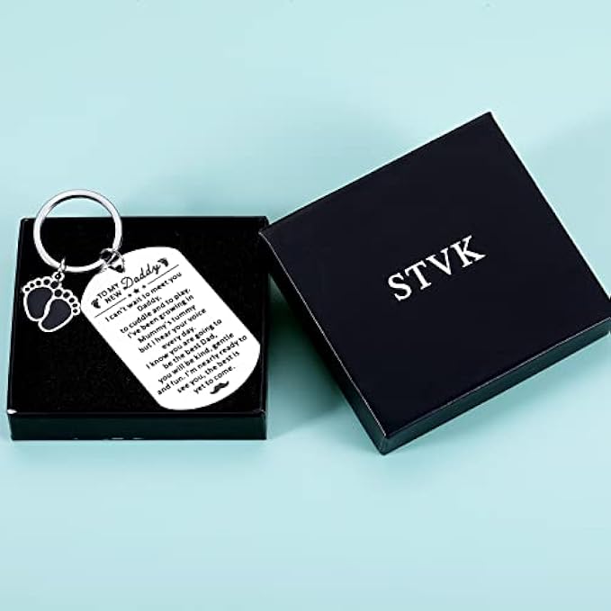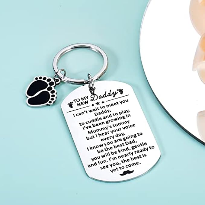 Imported Hook and Loop closure First Time Dad Mom Gifts for Men: Fathers day gifts for new dad to be- “To my new Daddy, I can't wait to meet you Daddy...I'm nearly ready to see you, the best is yet to come.” The birth of a baby is always so exciting and joyful, this new dad key ring will be a surprise pregnancy announcement gift for new dads, father to be, fiance, husband, son, son in law, uncle, brother, cousins, colleague friend from wife, mom to be, godmother, godfather, father mother in law, best friend, BFF or coworker. New Daddy to Be Gifts Keychain for Him: Daddy to Be Keychain is suitable for first time new father. Great baby birth gifts for Birthday, Mother's day, Father's Day, Thanksgiving Day, Valentine's day, Family gatherings or the Date of Birth. Thoughtful new parents gift for expectant dad gift from wife, new mom, new mommy, new mother. No matter what the occasion, this will be a gift for new daddy that makes a timeless impression. Congratulations on their exciting journey ahead to be a new dad. Baby Announcement Gifts Idea: The keyring is the great baby announcement keychain gifts for new dad, new father, father to be as an baby announcement gift or soon to be dad gifts. Perfect parents to be gift idea for Hospital delivery gift, First Father's Day Gift, Gender baby reveal gifts, Baby shower party gifts for new mum new dad or just because. The first time dad key chain will be a keepsake that makes a timeless impression between father and his dear little baby. Stainless Steel: Hook and loop closure, prevent the keys from falling. Polished from high-quality recyclable stainless steel. Skin-friendly, nickel free, lead free, no rust and no tarnish, won’t change color or get dark. The first time dad key chain will be a keepsake that makes a timeless impression between father and his dear little baby. Maybe he will think this keychain is a good anniversary, couple's day gift, but the quote on this gift is a great surprise to that guy who has no idea. Elegant Packaging and Meticulous Customer Service: You will get a well-made pendant with a smooth surface, packed in a black jewelry box, suitable for gift giving. It’s so sweet to give as Pregnancy Gifts, expected fathers to help them take all the stress out of terrible parenting childcare situations* While purchasing our products, Any suggestion or question, please feel free to contact the customer service center. We are happy to help you.