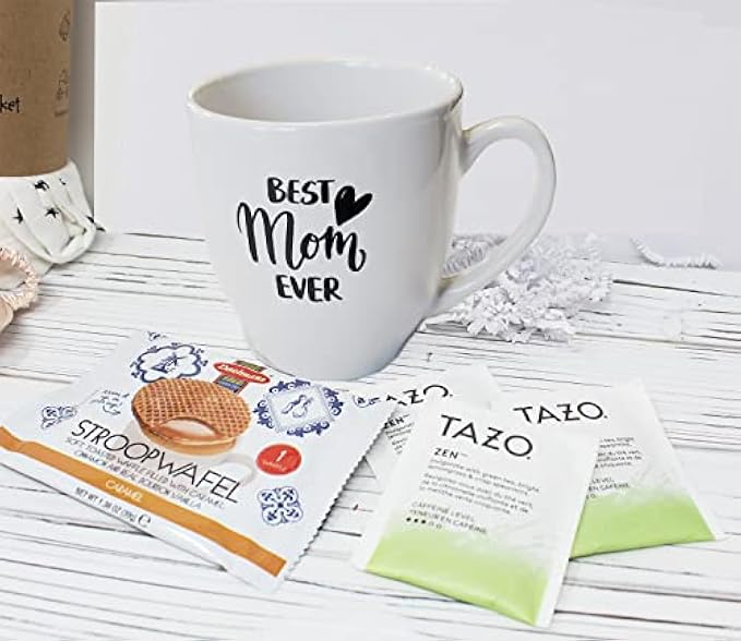 ♥Best Present Idea for First Time Mommy Full of goodies, Contains: Coffee / Tea mug, Premium Musline Swaddle for wrapping a new born baby , Fuzzy Socks, 4 Tazo Tea bags, Dove cream, Bath bomb, Daelmans Stroopwafels & Greeting post card for Mother ( back size blank that you can add your own hand Witten message