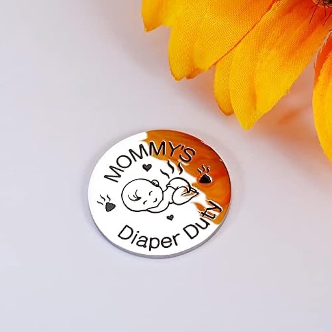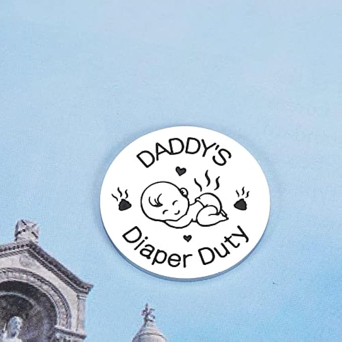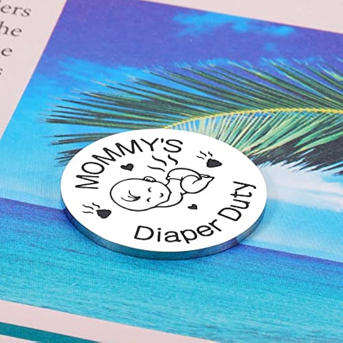 [Decision Coin for New Parents] A fun way to decide who will take care of the baby. Great presents for new parents. With Daddy on one side and Mommy on the other, it engraved: Daddy's Diaper Duty Mommy's Diaper Duty, only takes a flip of the air to decide who is responsible for this difficult task. Newborns need diaper changes, feedings, midnight care, baths, and more. This little coin can help you solve problems in joy. Let this decision coin help new parents make the choice, it must be fair. [Funny Gifts for Women Men] This decision-making coin is undoubtedly a good helper for moms and dads. You can give it to dad, mom, new daddy, mommy, new father, mother, father and mother-to-be,new parents, pregnant women, your son, daughter, friends, family, neighbor. New parents or soon-to-be parents will love this little surprise. It can help couples solve their troubles. This fun gift will remind them of funny images of caring for baby, and they will look forward to baby's arrival even more. [Useful Coin for Mom Dad] This lovely coin for parents is the perfect solution to the division of labor between mom and dad. Just let the coins decide whose turn it is. Great gift for new daddy and mommy at a baby's birthday, pregnancy announcement, gender reveal ceremony, or baby shower. It can also be used as a Christmas, Valentine's Day, Father's Day, Mother's Day, New Year's gift to those friends and family members who are planning to become pregnant, or have become parents of newborns. [Safe & High Quality Material] The decision Making present is made of high-quality stainless steel, which will not rust or deform. The lettering is clear and easy to read. Environmentally friendly and wear-resistant materials make this baby care coin last for a long time, very suitable for new father and mother. And we have also carefully designed the language and baby patterns on the product, which is very sweet and cute. Get it and the couple will be out of some trouble. [You Will Get] A stainless steel coin: 1.18×1.18×0.08 inch (30×30×2mm); an exquisite gift box; worry-free after-sales service up to 12 months. We are very willing to help customers solve problems. If you have questions about products and want to consult us, no matter before or after sales, please feel free to contact us. We will provide you with good products and services. Hope this little gift can help all new dad and mom solve the problem of who will take care of the baby.