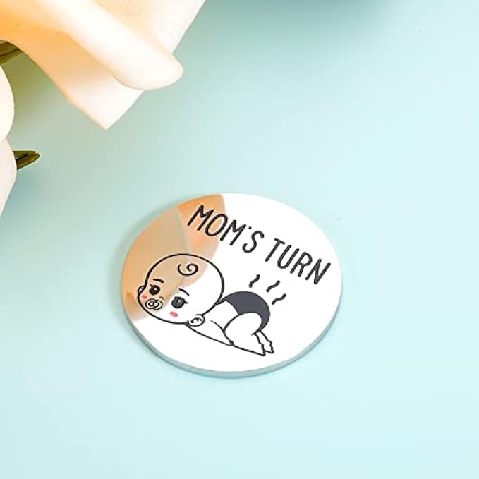 ?Funny New Parent Decision Coin? Congratulations on becoming new mom dad, it’s definitely a new journey! The funny decision coin front “MOM’S TURN” means it’s mommy’s turn to change the diaper, back “DAD’S TURN” means it’s daddy’s turn to clean up and wipe bottom. Cute decision maker perfect for new parents, new mommy daddy, first time mom dad, mom dad to be, husband wife. Baby coin makes a great gift for Birthday, Christmas, Stocking Stuffers, Father’s Day, Mother’s Day, Baby Announcement. ?Baby Shower Gifts Idea? If you are looking for a baby shower registration gift or a gift for new parents, try these novelty flip coin deciders to decide who will do the next diaper change or night feeding. A cut and perfect gift for baby shower, Christmas, birthday, gender baby reveal, get pregnant, family dinner to your spouse, new mom/dad, expectant mother/father, new mama/papa, pregnant women, best friend, DIL, SIL, sister, brother, couple got a new puppy to decide who do the tough task. ?First Time Dad Mom to be Gifts? The diaper flipping coin perfect for new parents, first-time dad/mom, new daddy/mommy, new father/mother, father/mother-to-be, pregnant women, you and your spouse, friends, family, son, daughter, neighbor, son-in-law, daughter-in-law, best friend, coworker or anyone who are parents or parents-to-be. Perfect new mom dad gifts for mother’s day, father’s day, or the Date of Birth. Enjoy being a new parent - a new life and new hope. ?Double-Side Pregnancy Gift for Women Men? This coin is made of high-quality eco-friendly stainless steel, no harm, no rust, no fade, sturdy enough. Perfect small gifts for pregnant women to open a new chapter. Made from tarnish-free, rust-proof, hypoallergenic, and cut from thick Stainless Steel, our new dad mom gift coin is truly durable and in quality. With the laser engraving and machine polishing, your message of love and support is legible and well-protected even on daily use. ?Fathers Day Mothers Day Gifts? Perfect as first time mom gift, baby shower gifts, gender reveal gifts, new mom gifts for women, pregnant gifts for women, new mommy daddy gift, stocking stuffers for men women, first time dad gifts, funny baby gift, postpartum mommy gifts, baby first christmas gifts, christmas gifts for mom dad, date of birth gift. 1.18*1.18 inch/3*3 cm. Comes in a STVK brand gift box, for any concerns, please feel free to contact us.