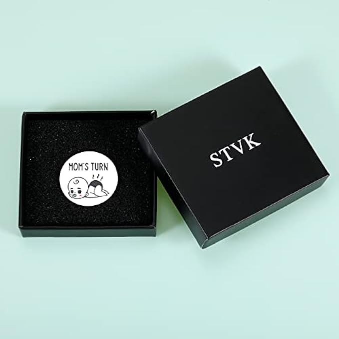 ?Funny New Parent Decision Coin? Congratulations on becoming new mom dad, it’s definitely a new journey! The funny decision coin front “MOM’S TURN” means it’s mommy’s turn to change the diaper, back “DAD’S TURN” means it’s daddy’s turn to clean up and wipe bottom. Cute decision maker perfect for new parents, new mommy daddy, first time mom dad, mom dad to be, husband wife. Baby coin makes a great gift for Birthday, Christmas, Stocking Stuffers, Father’s Day, Mother’s Day, Baby Announcement. ?Baby Shower Gifts Idea? If you are looking for a baby shower registration gift or a gift for new parents, try these novelty flip coin deciders to decide who will do the next diaper change or night feeding. A cut and perfect gift for baby shower, Christmas, birthday, gender baby reveal, get pregnant, family dinner to your spouse, new mom/dad, expectant mother/father, new mama/papa, pregnant women, best friend, DIL, SIL, sister, brother, couple got a new puppy to decide who do the tough task. ?First Time Dad Mom to be Gifts? The diaper flipping coin perfect for new parents, first-time dad/mom, new daddy/mommy, new father/mother, father/mother-to-be, pregnant women, you and your spouse, friends, family, son, daughter, neighbor, son-in-law, daughter-in-law, best friend, coworker or anyone who are parents or parents-to-be. Perfect new mom dad gifts for mother’s day, father’s day, or the Date of Birth. Enjoy being a new parent - a new life and new hope. ?Double-Side Pregnancy Gift for Women Men? This coin is made of high-quality eco-friendly stainless steel, no harm, no rust, no fade, sturdy enough. Perfect small gifts for pregnant women to open a new chapter. Made from tarnish-free, rust-proof, hypoallergenic, and cut from thick Stainless Steel, our new dad mom gift coin is truly durable and in quality. With the laser engraving and machine polishing, your message of love and support is legible and well-protected even on daily use. ?Fathers Day Mothers Day Gifts? Perfect as first time mom gift, baby shower gifts, gender reveal gifts, new mom gifts for women, pregnant gifts for women, new mommy daddy gift, stocking stuffers for men women, first time dad gifts, funny baby gift, postpartum mommy gifts, baby first christmas gifts, christmas gifts for mom dad, date of birth gift. 1.18*1.18 inch/3*3 cm. Comes in a STVK brand gift box, for any concerns, please feel free to contact us.