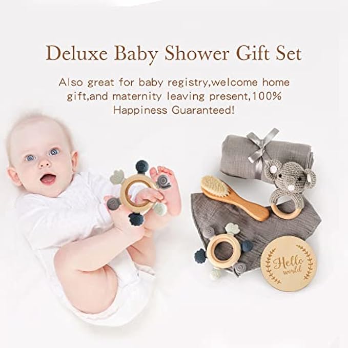 • ?Highest Quality New Baby Gift: Our baby shower gifts for girls boys are carefully selected and handpicked to ensure the highest quality standards, employing premium materials which are 100% safe and incredibly durable. No BPAs or nasty paints!Perfect for 0-6-month-old baby girls boys as a gift for new mothers to welcome their baby into the world.