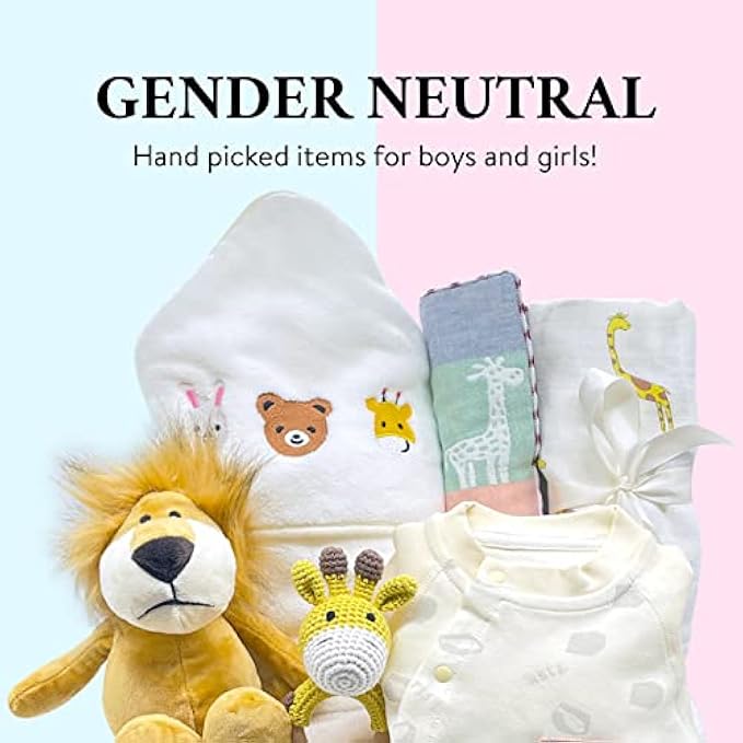 Newborn Baby Gifts Box with Hooded Towel, Basket, Newborn Baby Gifts Sets, Gender Neutral Baby Welcome Box, Perfect Baby Gift Basket, Baby Girl or Baby Boy Gift