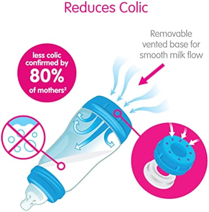 • ANTI-COLIC - Our vented base design reduces colic symptoms in 80%* of babies, eliminating bubbles that cause gas and aggravate colic and reflux symptoms.