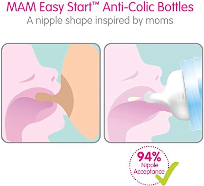 • PRODUCT DETAILS - MAM Newborn Essentials "Feed & Soothe" Set includes: Two 5-oz anti-colic bottles with 2 Slow Flow silicone nipples, Two 9 oz anti-colic bottles with 2 Medium Flow nipples, & two 0-2 Month pacifiers with orthodontic nipples