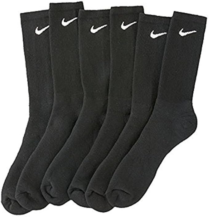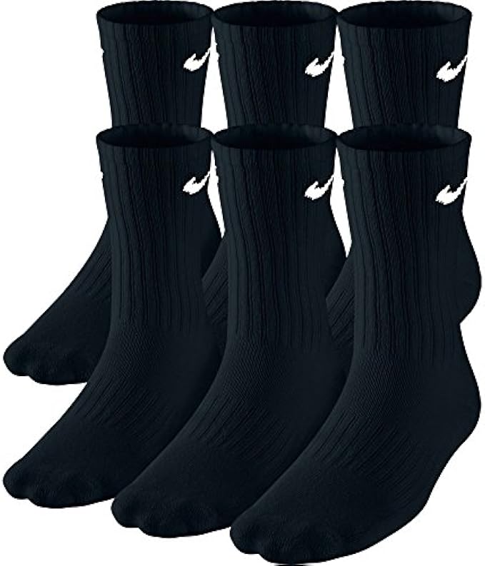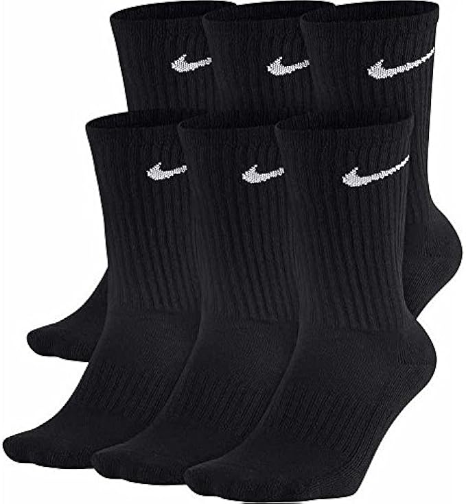 NIKE Unisex Performance Cushion Crew Socks with Bag (6 Pairs), Black/White, Medium