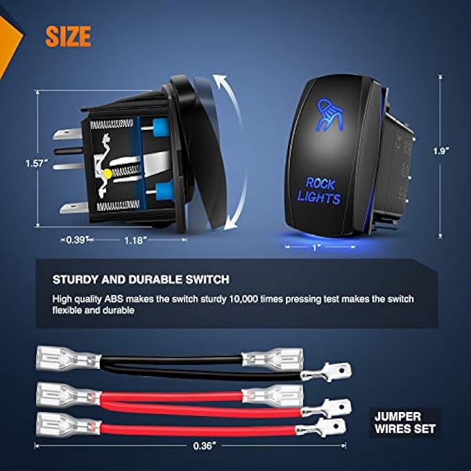 Easy to install and use 5 pins on-off rocker switch with SPST design (single pole single Throw) simple installation freely turn on or off the light