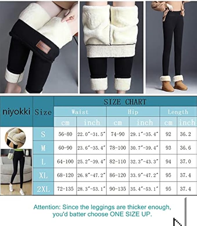 • 【Warm Tips】The sherpa leggings for women is machine washable and hand washable, but can't be bleached. Before buy the leggings, please check out your size based on our size chart (please allow slight size errors due to manual measurement). Since the leggings are thicker enough, you'd batter choose one size up.