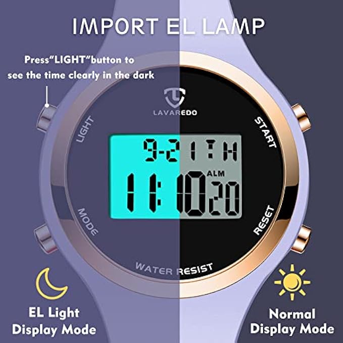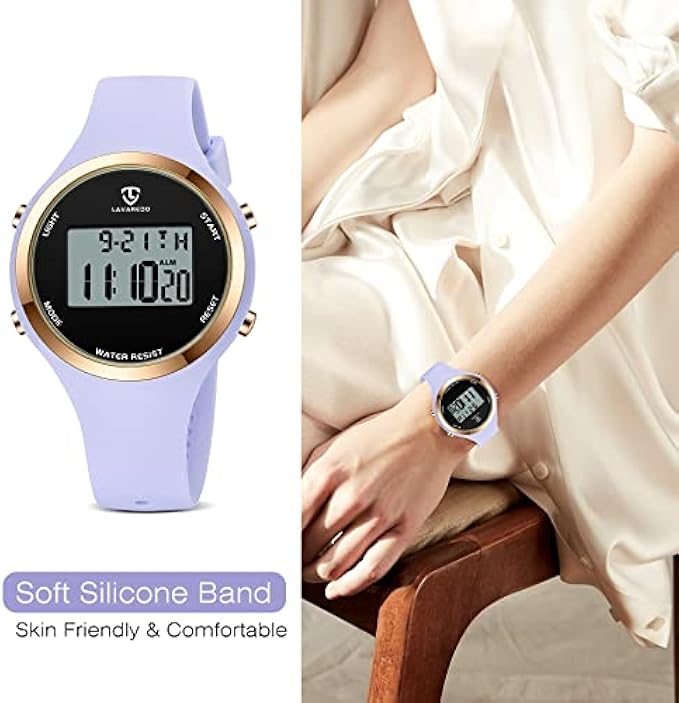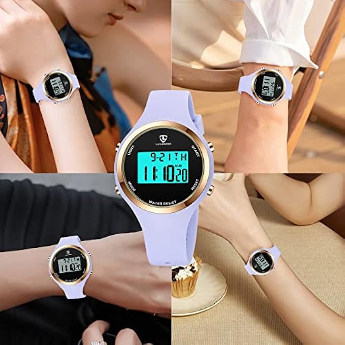 • ? Digital watch womens: What you see is what you get. It's a simple digital watch. The rose gold bezel is a very nice, beautiful Jelly Color design classy looking. with multi-functional digital dial: Alarm, Back light, 12/24 H, stopwatch, calendar.