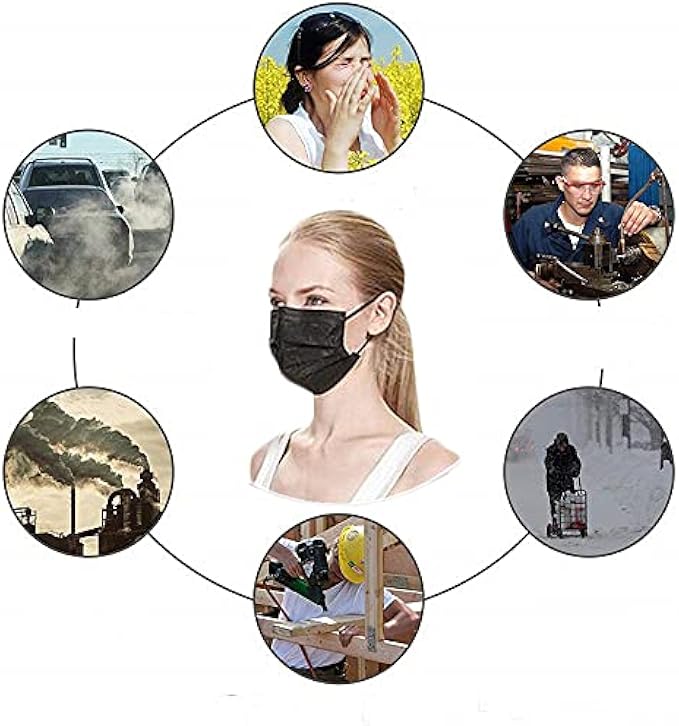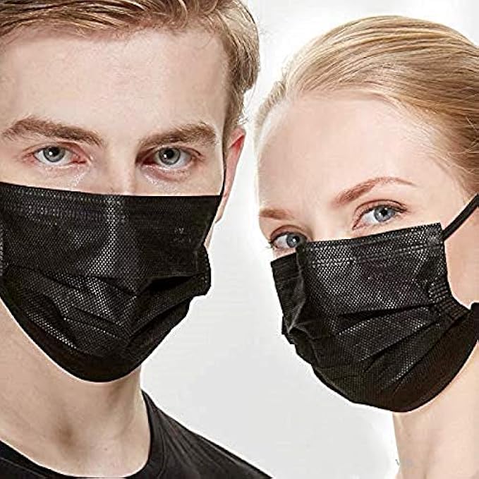 NNPCBT 100PCS 3 Ply Black Disposable Face Mask Filter Protection Face Masks