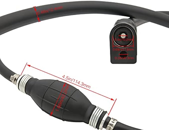 The marine fuel line primer bulb assembly includes rubber fuel line, premium quality rubber bulb and stainless steel clamps, it have resists leaking and hardening.