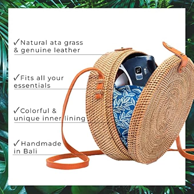• ✔ [Premium Quality] Say goodbye to synthetic, and hello to au naturel. Each rattan purse is made from hand selected natural grasses and genuine leather. Whether it’s a beach purse or summer bag, our affordable rattan bags for women are made to last.