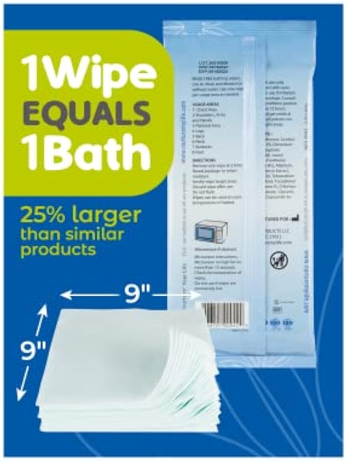 Waterless Bath Wipes: Feel completely refreshed without needing access to a shower or bathtub. These disposable cleansing washcloths can be safely microwaved for a warming and soothing experience.