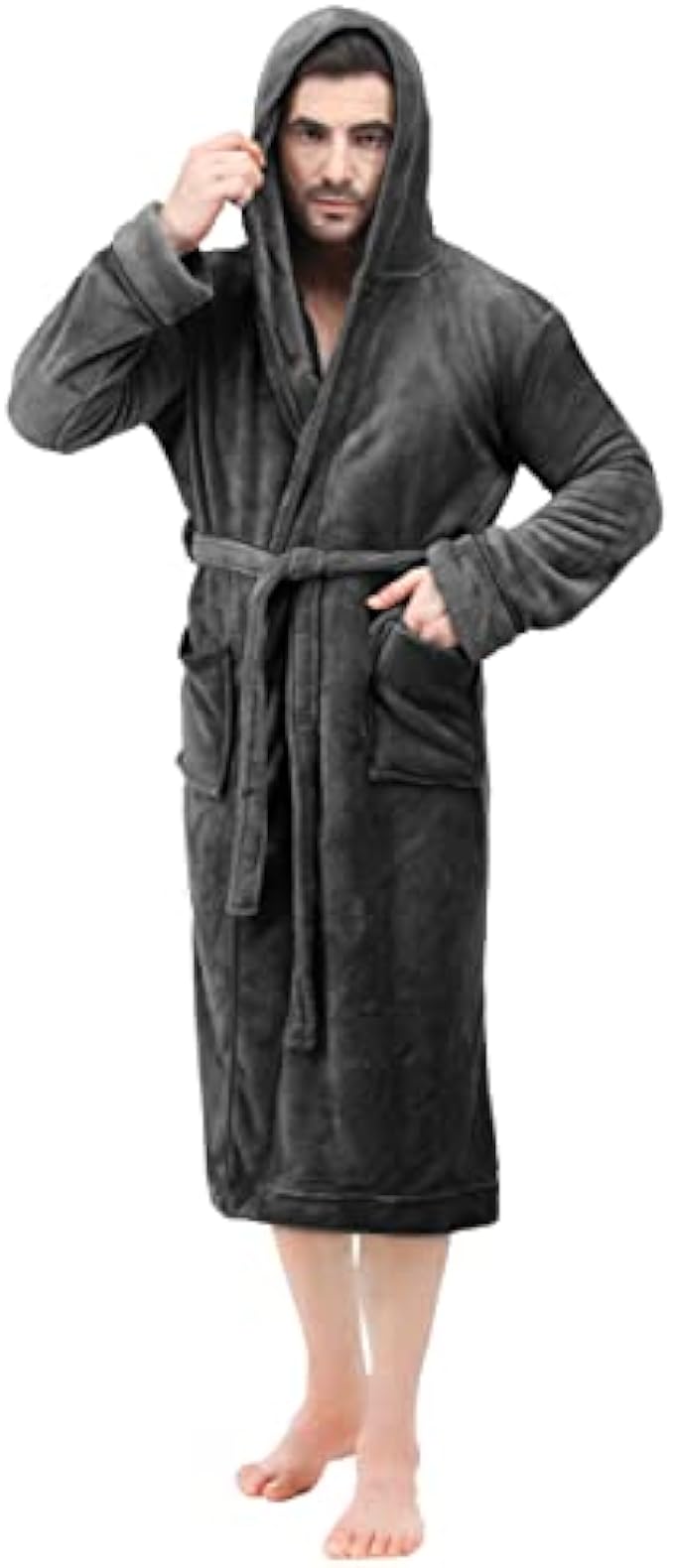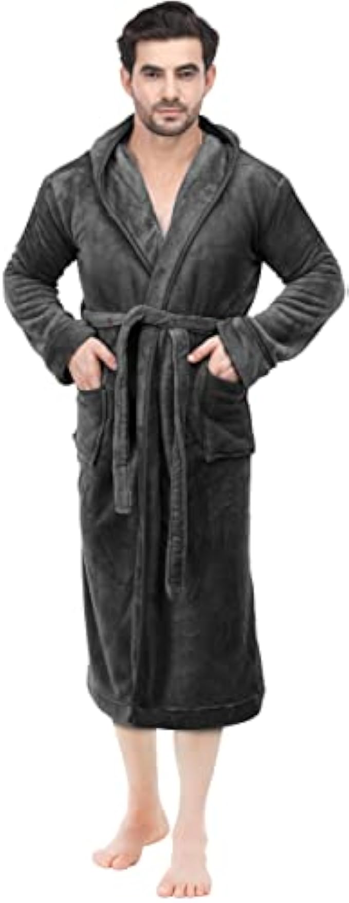 HOODED FLEECE BATHROBE - Super soft, plush, hooded fleece bathrobe made from coral fleece that offers great comfort whenever in use; perfect for lounging, relaxation and a great choice to wear after a tiring day at work.