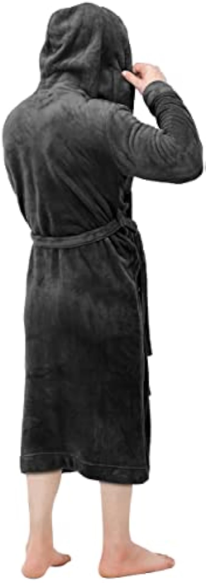 SOFT AND FLUFFY - The bathrobe is soft and fluffy, which can be worn all day long; the bathrobe carries a classic design with a hood to give a trendy look to it.