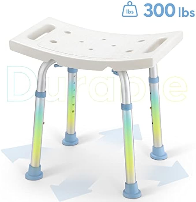 Lightweight and Durable - Our Shower Bench is constructed with aluminum frame, the lightweight shower stool frame supports up to 300 pounds. The lightweight frame is easily portable for added convenience.