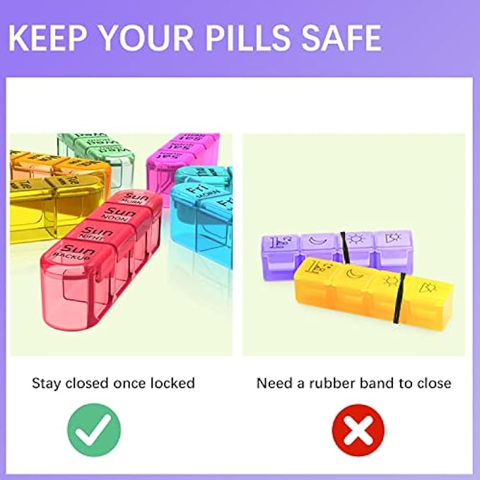 [ Airtight 7 Day Pill Organizer] The daily pill box organizer is colorful. And it also has a moisture-proof design that your pills will maintain their freshness when closed.