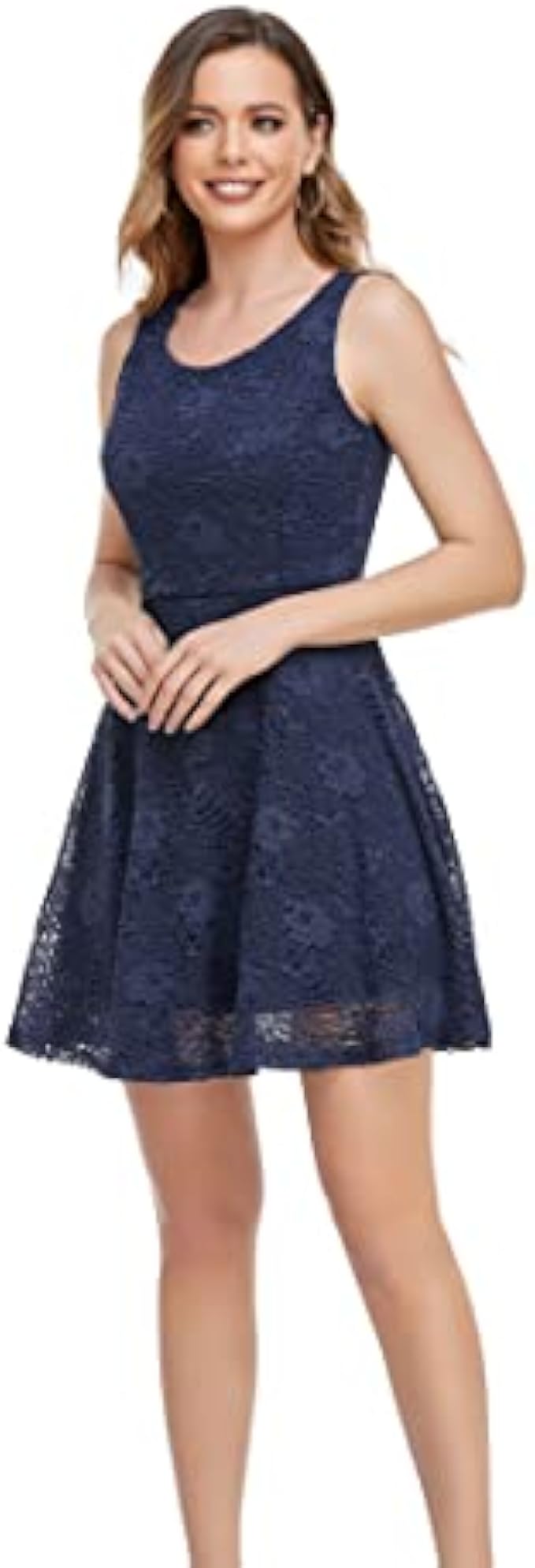 ODCOCD Women's Knee Length Short Sleeve Elegant Lace Dresses/Linning Dresses